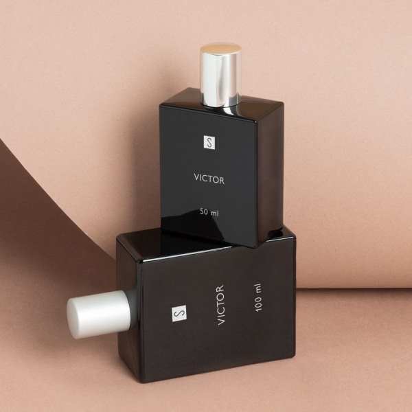Shiny Black Glass Bottle 100 ml for perfumes.This item matches a wide range of capsules, pumps and rings.
